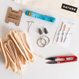 We created The Weavers Bench Kit to include all the things you should have near your loom but rarely have them in reach. This kit conveniently has everything for repairing a broken warp thread, checking your sett, attaching your lease sticks together in an easy no-tape way, and much more.