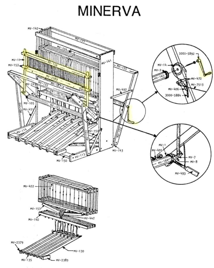 Leclerc offers replacement shaft parts for most of their looms. These are parts for the Minnerva 8 Shaft 22" loom in their catalogue.
