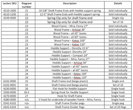 We have access to all parts and accessories for Leclerc, Schacht, Ashford and Louet looms. Send us an email at orders@gathertextiles.com and we'd be happy to help!