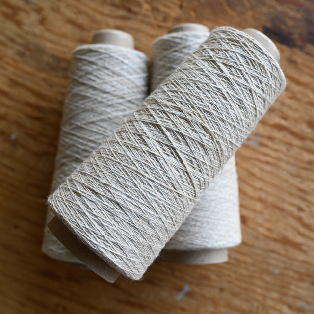 This cottolin yarn is just slightly tighter spun when compared to other cottolin slubs available. It has great texture and will weave up beautifully in tea towels, table linens and more. I wish we could get more of this yarn because it’s such a classic combination that we will use up in no time!
