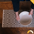 It’s amazing what complex designs you can build from the most basic shapes. Inspired by the work of local weaver Conchita Rico, this table runner uses simple blocks of purple and white to create a mesmerizing geometric design.