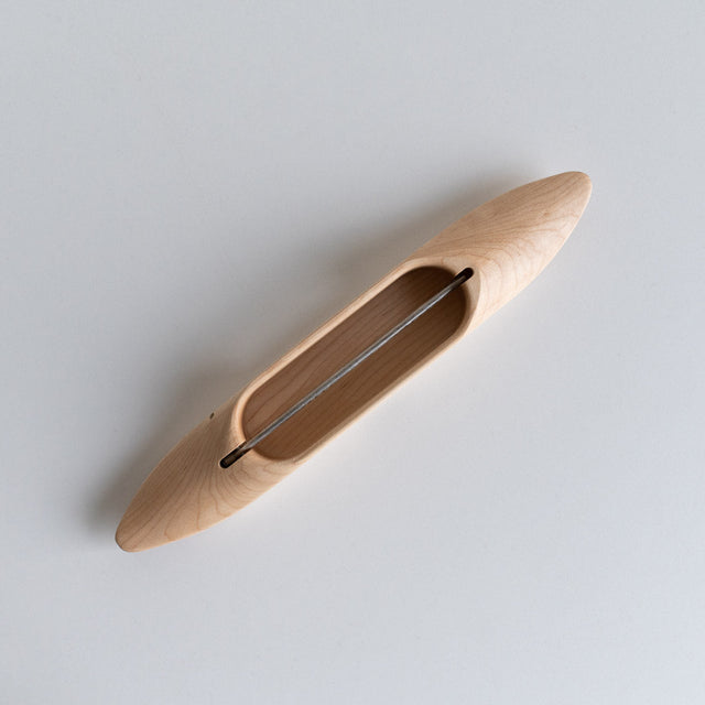 The 11" boat shuttle SLIM is comfortable to hold for most weavers. The closed bottom style gives the shuttle a touch of extra weight that gives extra control when throwing.