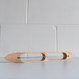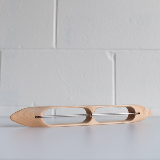 Double-bobbin boat shuttles that are ideal for doubled weft threads. Two separate bobbin shafts make it possible to remove one bobbin at a time. This slim shuttle is particularly useful for weaving on table looms, rigid heddle looms, or other looms with smaller sheds.