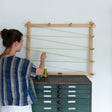These warping boards are sturdily constructed and can be taken apart for easy storage. They can be used flat on a table, or hung on a wall.