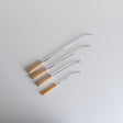 Also called a threading hook or sley hook, these hooks can be used to thread heddles and to sley reeds. They have a curved steel shaft (3/16” wide) and and a ¼” angled hook.