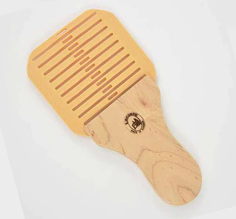 The Leclerc warping paddle helps you wind up to twenty threads at once. You can wind a solid warp faster or keep an patterned warp organized. The "rigid heddle" topper enables making a cross as you wind your warp around the pegs of your warping board or mill.