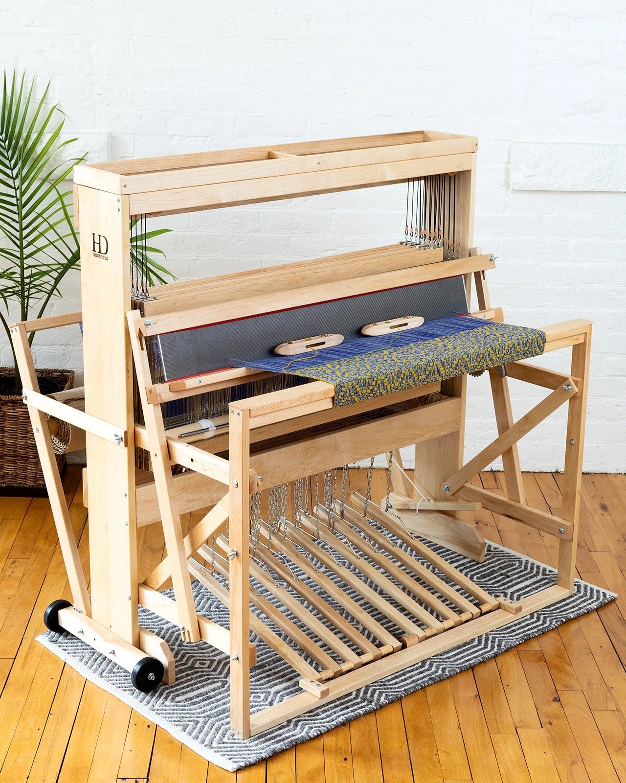 Harrisville Designs floor looms are hand-built, using the highest quality hard rock maple. All of their floor looms feature an innovative tie-up system, using “snap chains” instead of cords and knots, or wires that fall out. The tie-up is quick, simple and secure for any treadle to harness combination. Harrisville Designs looms are designed with a friction brake for excellent tension control and an adjustable beater to accommodate reeds of different heights and widths. The suspended harnesses make the jack-action light, quiet, smooth and rhythmical - the way it should be. Unlike most looms, their floor looms are easily folded while fully warped, leaving the tie-up intact. Take them to workshops, unfold them, and you're ready to weave! Living in a small apartment? They can be folded and tucked away to entertain company or minimize studio space.