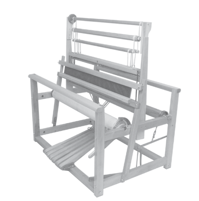 A counter-balanced 4 shaft loom, with a sturdy, rigid frame, that makes it especially useful for teaching, commercial production studio or rug weaving.