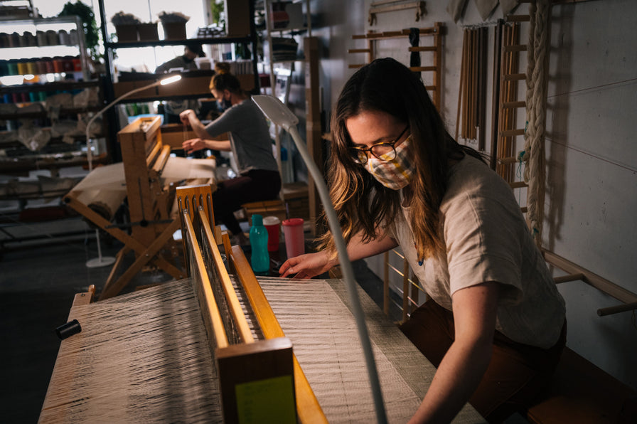 There’s a reason why these looms are treated as the gold standard weaving loom. They are incredibly flexible, producing both simple and highly complex patterns. They are efficient, allowing you to make multiple items on a single warp. They are fast to weave on, dividing the labour of weaving between your hands and your feet. And they are incredibly enjoyable to use. Floor loom weaving is what often comes to beginners’ minds when they picture weaving--the rhythm of shafts rising and falling, a shuttle flying back and forth, and a long roll of finished work slowly building up around the cloth beam.