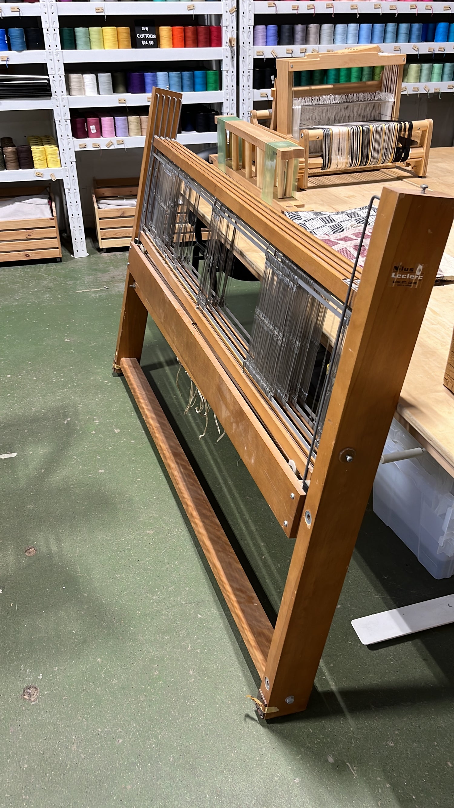 We love used looms--everyone who works here owns at least one. In Alberta, there are looms hidden in basements and garages all over the place. Often looms come up for sale as their owners downsize to move to retirement homes, or as part of estate sales. Other times, people simply don’t weave enough to justify keeping them! Many used looms around here are from the 1960s - 1980s, but we’ve used looms from the 1920s and earlier.